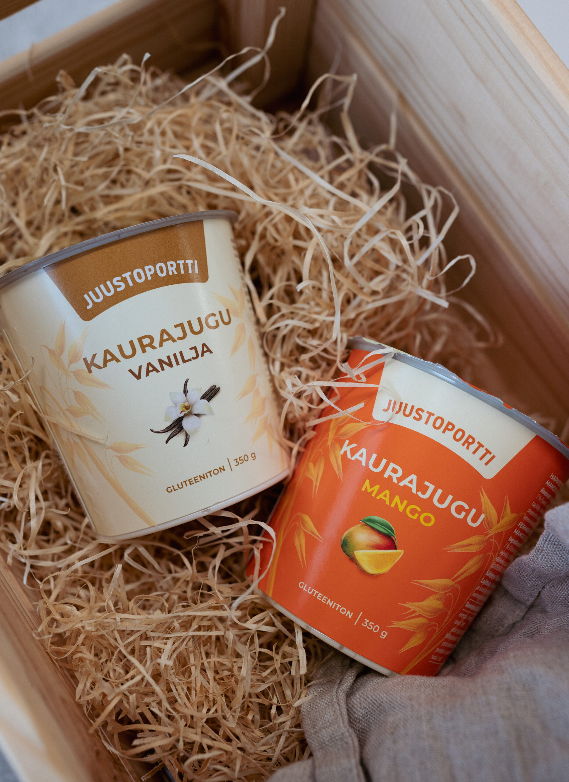 Juustoportin kaurajugut valmistetaan suomalaisesta, gluteenittomasta kaurasta Juustoportin perhemeijerissä Jalasjärvellä. Tuote on maidoton, gluteeniton ja vegaaninen, joten se sopii luontevasti myös kasvipohjaiseen ruokavalioon, mutta ennen kaikkea kaikille, jotka etsivät täyteläistä vaihtoehtoa jogurtille.
