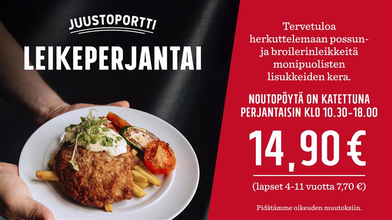 Leikeperjantai 14,90 € (lapset 4-11 vuotta 7,70 €)