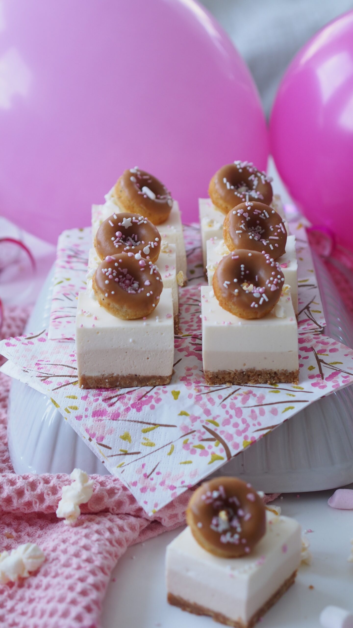 Koristele leivokset minidonitseilla, popcornilla, vaahtokarkeilla ja koristerakeilla.