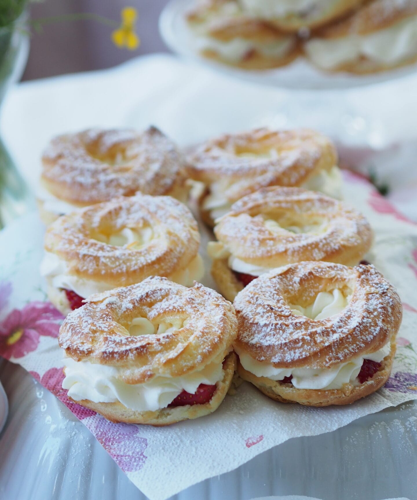 - Nosta toinen puoli donitsista kermavaahdon päälle.