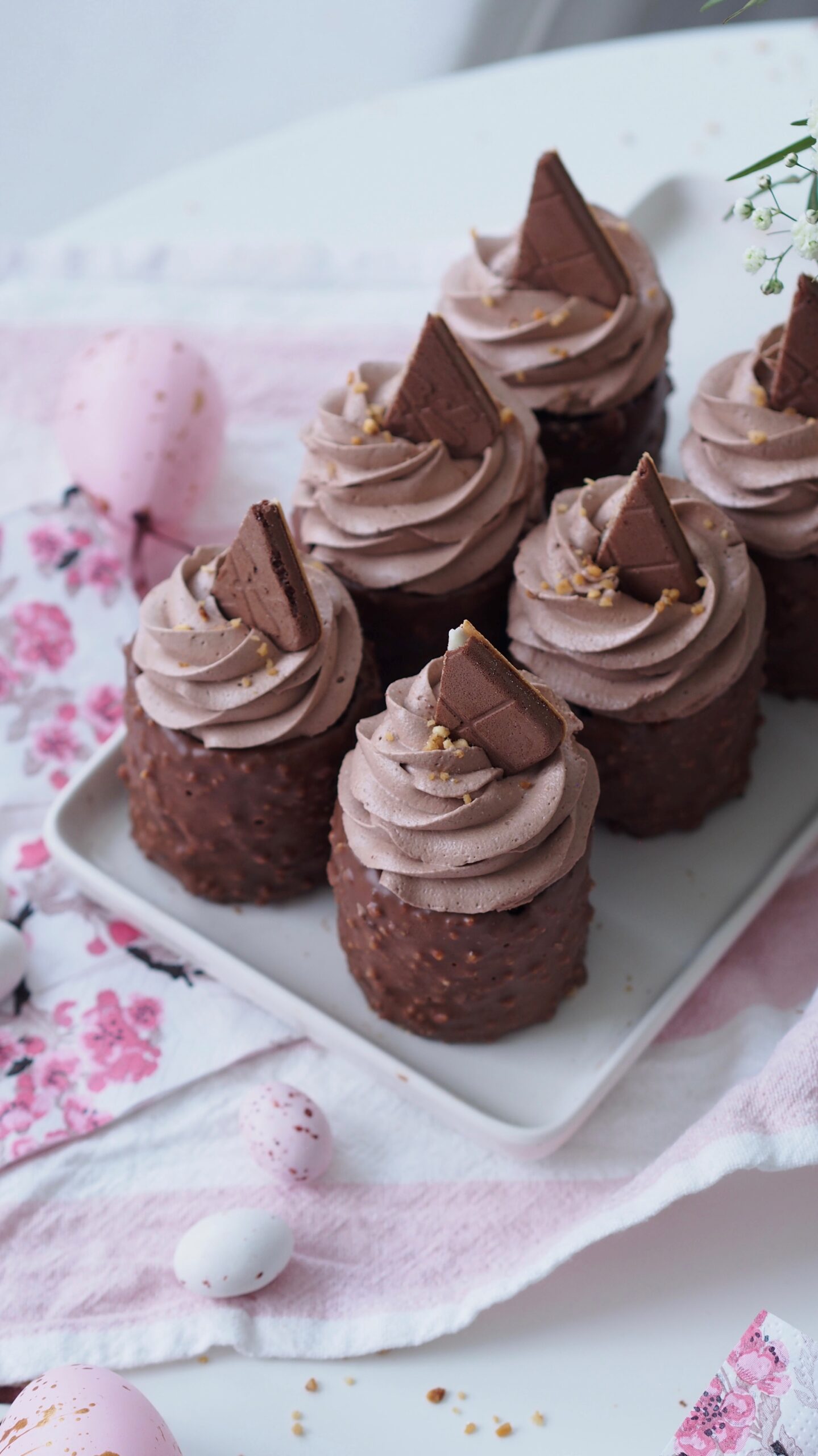 - Koristelu leivokset esim. Kinder cards kekseillä tai vaihtoehtoisesti kindersuklaalla ja hasselpähkinärouheella.